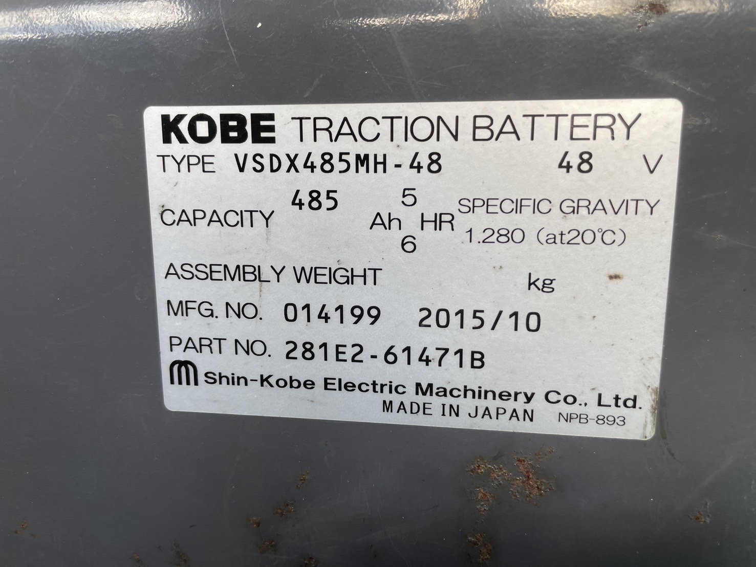 備考:バッテリー 1.5t KOBE48V バッテリー現状